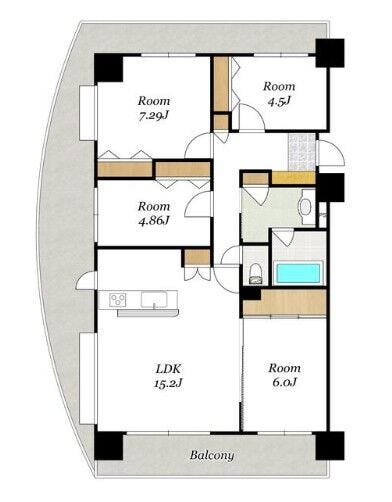 | 専有面積 | 壁芯 86.16㎡ | 所在階 | 13階建/7階部分 |